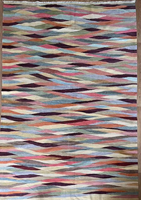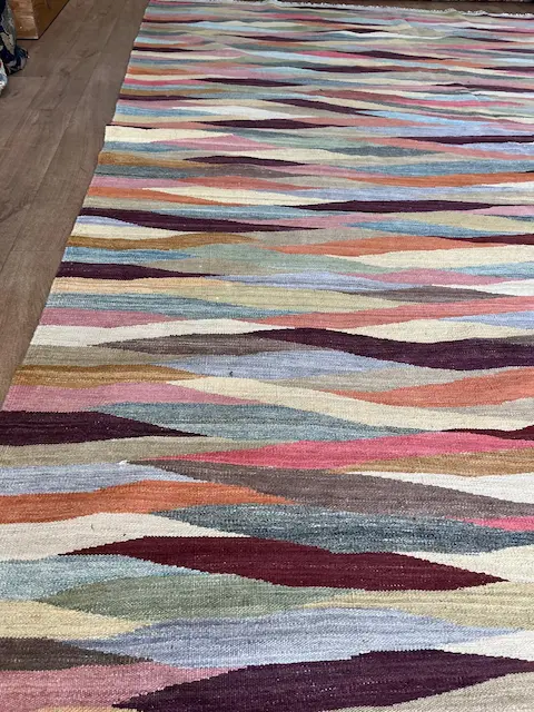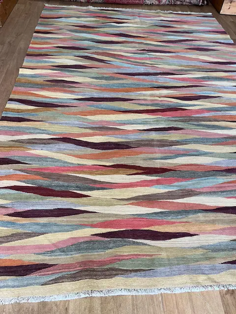 These stunning Afghan Kilims are flat woven with an all wool construction. Generally using bright colours and bold designs giving a wonderful affect in the room. They are reversible and hard wearing.