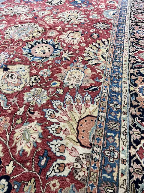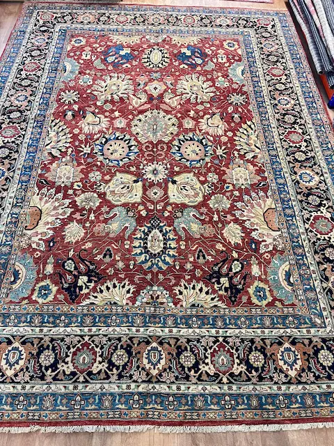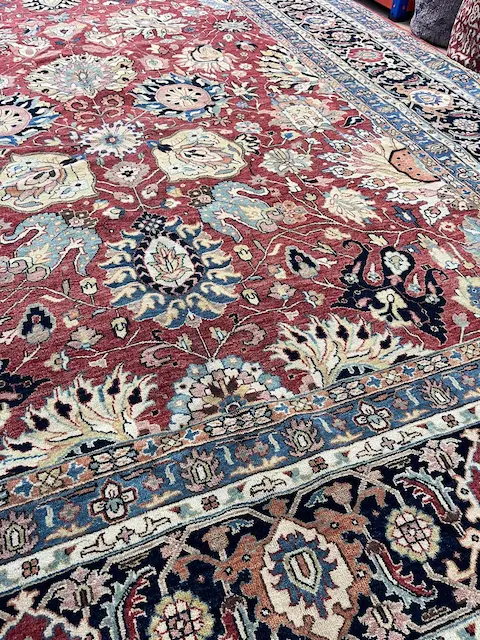 This wonderfully woven 10/10 quality Indian carpets is a joy to view. Made with the best wool and amazing colours in a traditional design using contemporary colours.