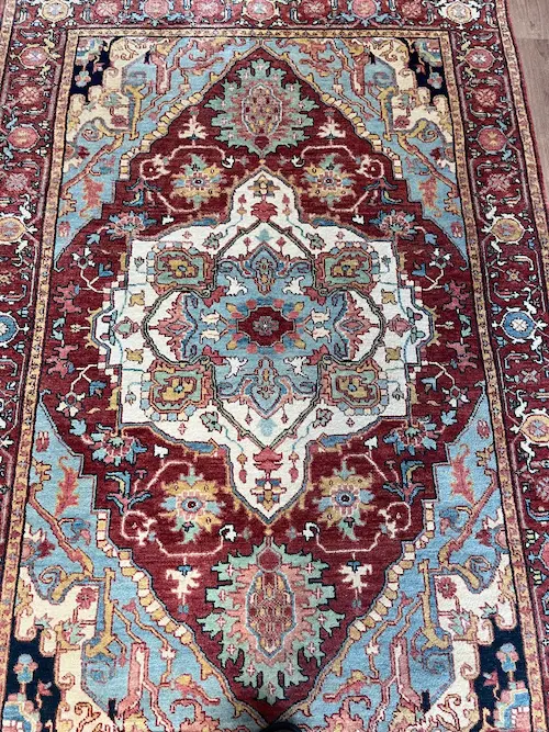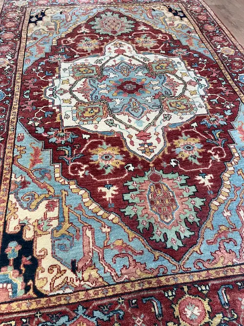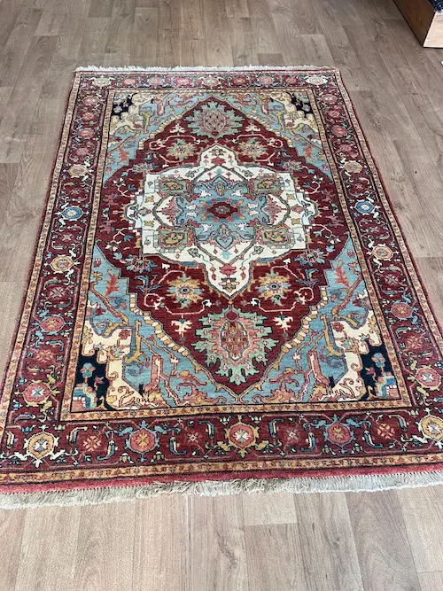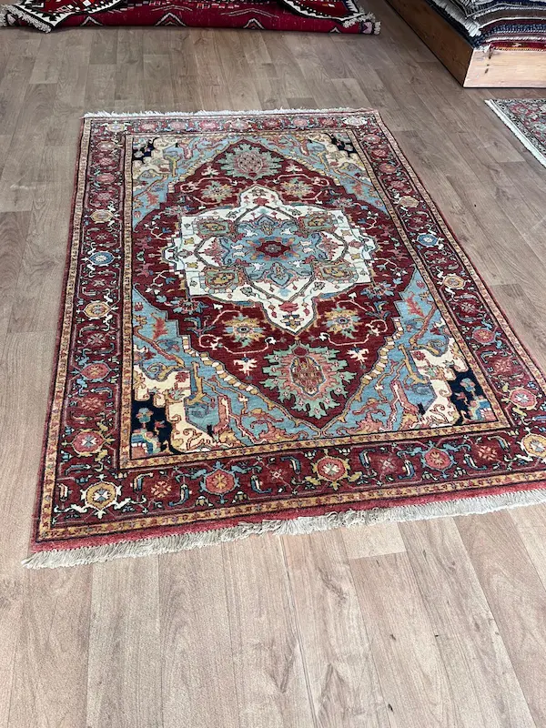 Beautifully hand-woven Indian rug, woven in the Bhadohi area with the finest of wool in this classic design using a modern palette of colours