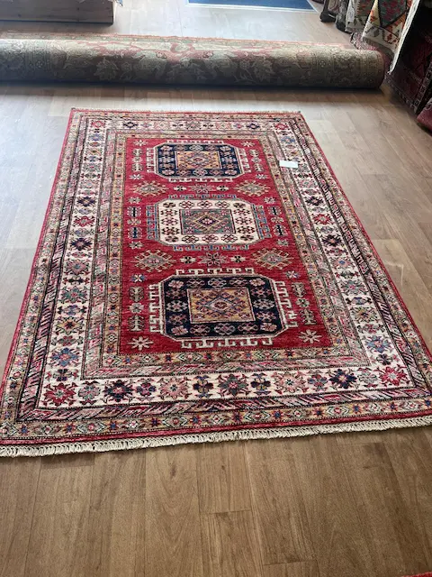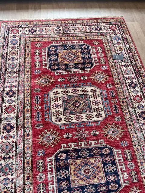 This splendid hand-woven Kazak has an amazing sumptuous feel with the richest of colour. Made with the finest hand-spun wool by the best artisan weavers