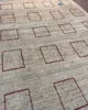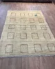 The Luri and Qashqa’i nomads who migrate over vast territories in Southern and Western Iran have long been famous for their carpets, made from the wool of their own sheep which they have carded and spun themselves. They are woven by the women of the tribes, on primitive portable looms which are stretched out on the ground. Apart from the fine more formal carpets for which the tribes are famous, they also weave another type of rug which are much more creative in design. These are the Gabbehs. The use of undyed wool and a contemporary design in this particular piece produces an elegant rug