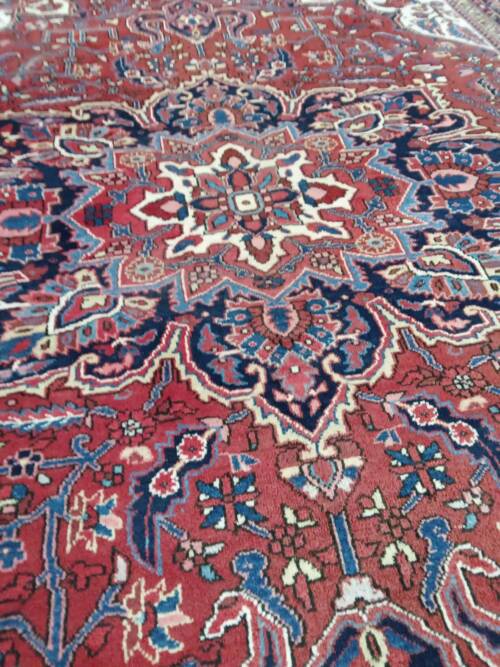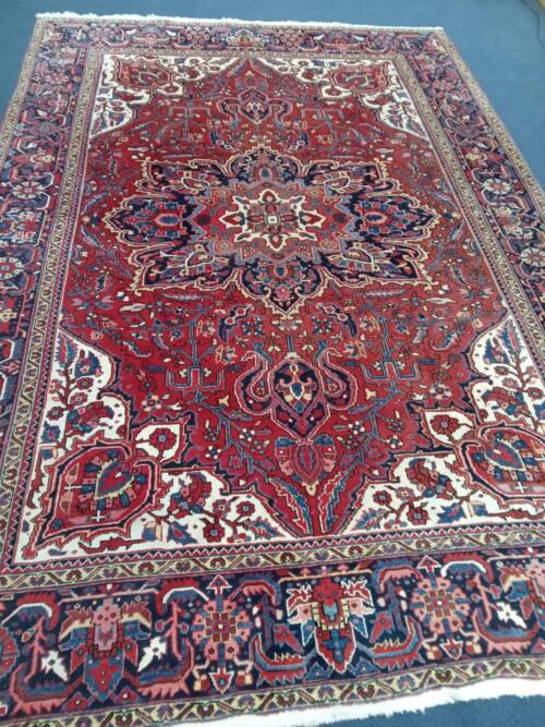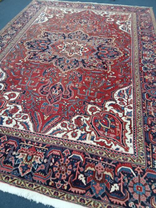 A stunning Heriz, c. 1970, woven in the traditional way using the most stunning of colours. Although 50 years old still in beautiful condition and the colours are softened to give a beautiful carpet